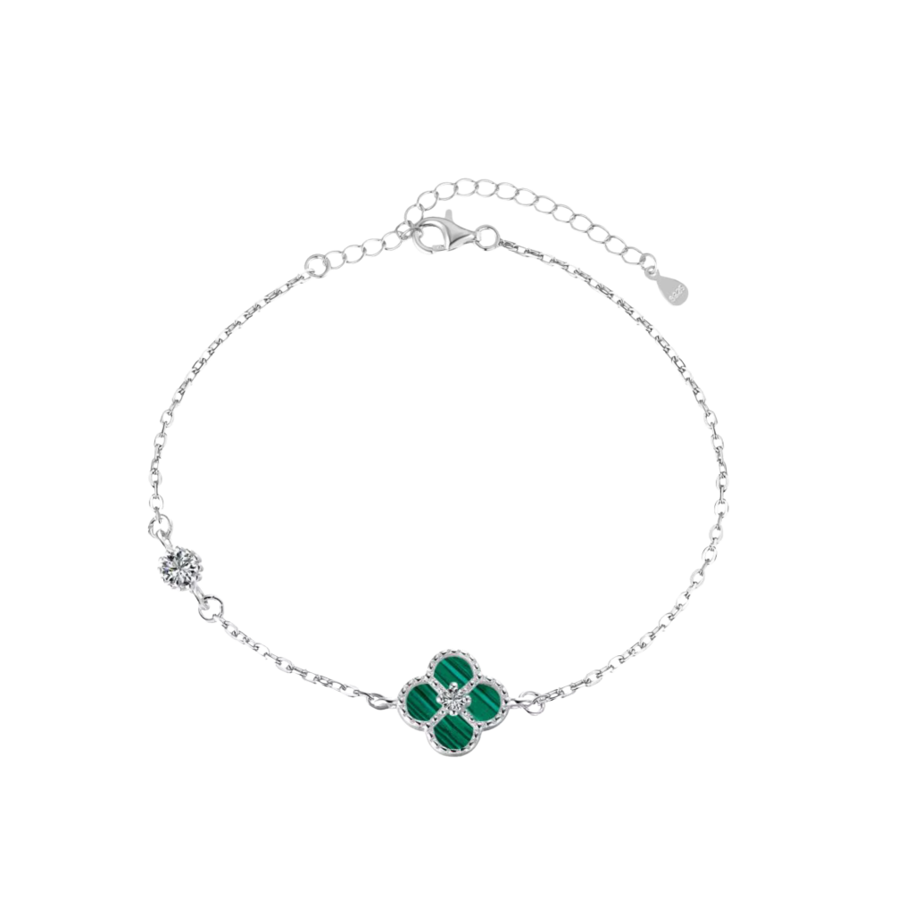 Hopeinen rannekoru zirkoneilla ja malakiitilla