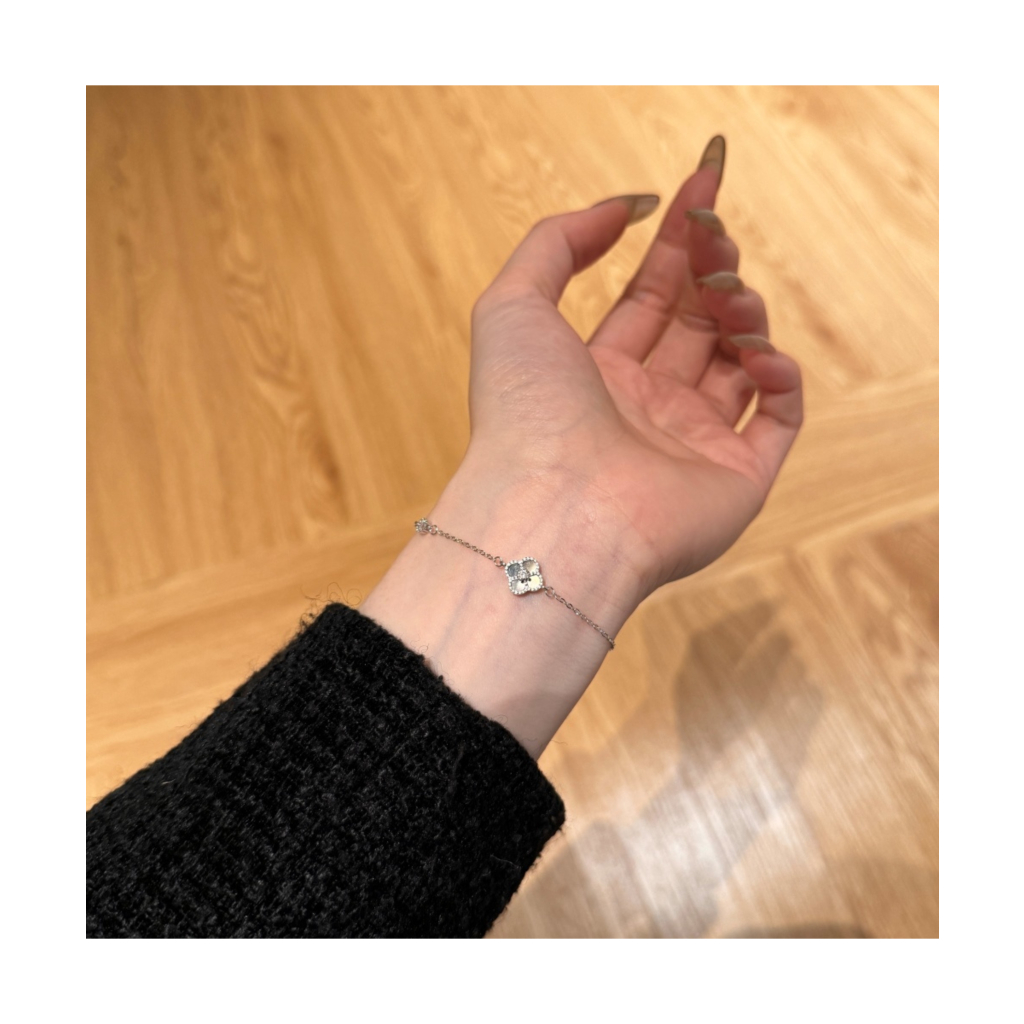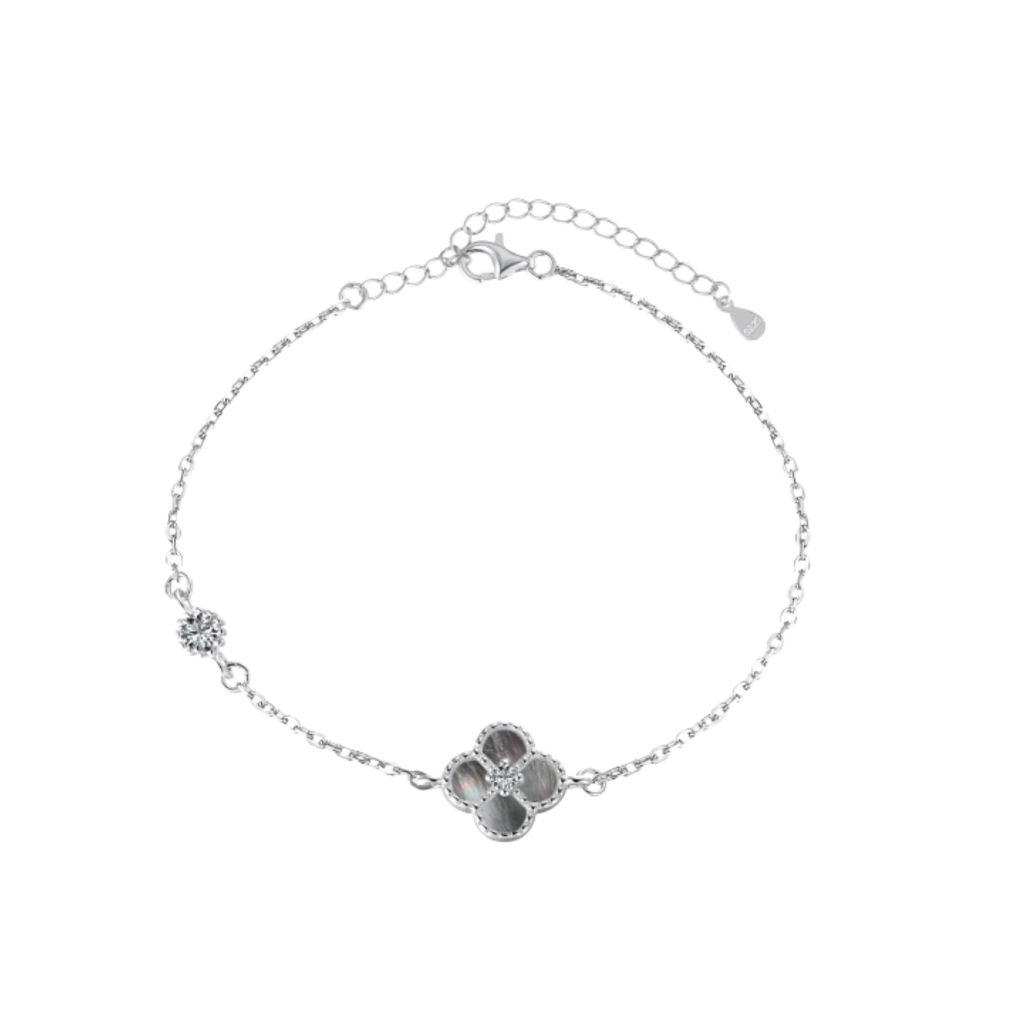 Hopeinen rannekoru zirkoneilla ja helmiäisellä