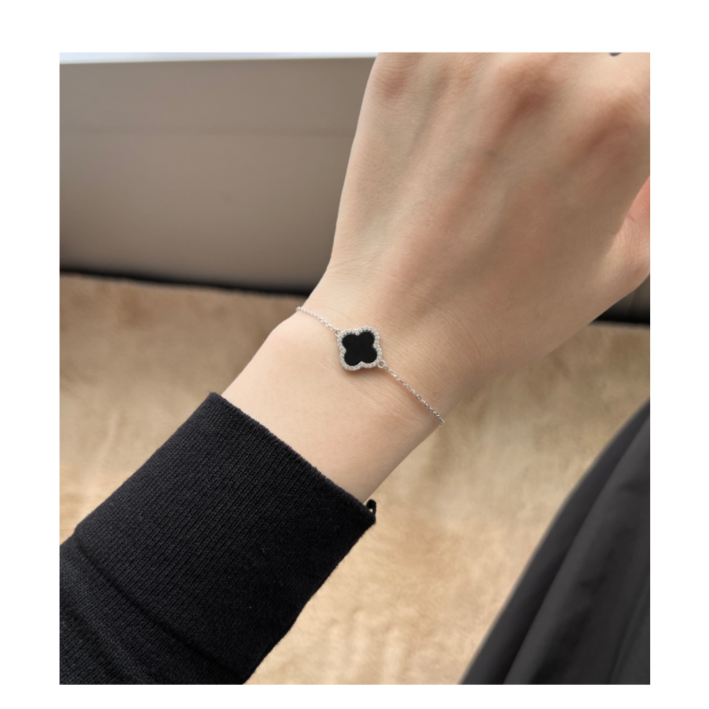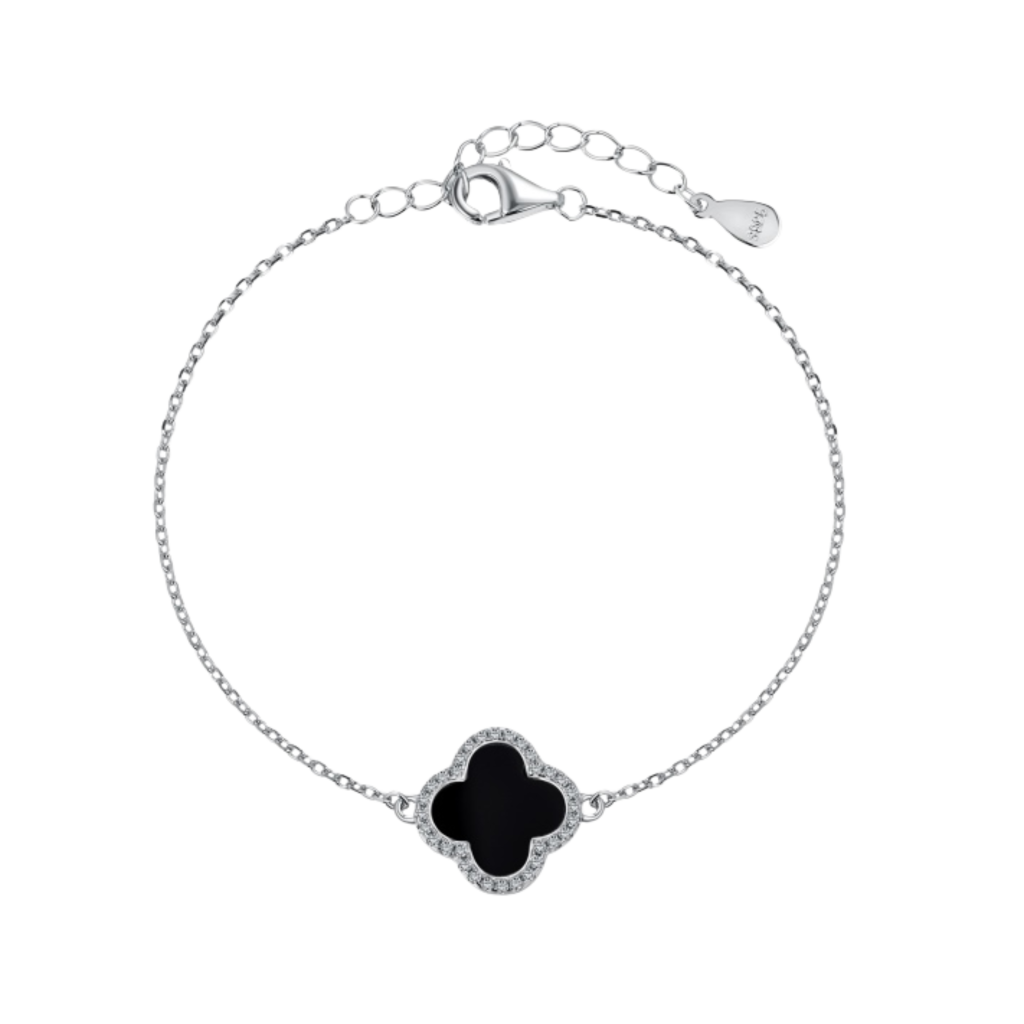 Hopeinen rannekoru onyksilla ja zirkoneilla