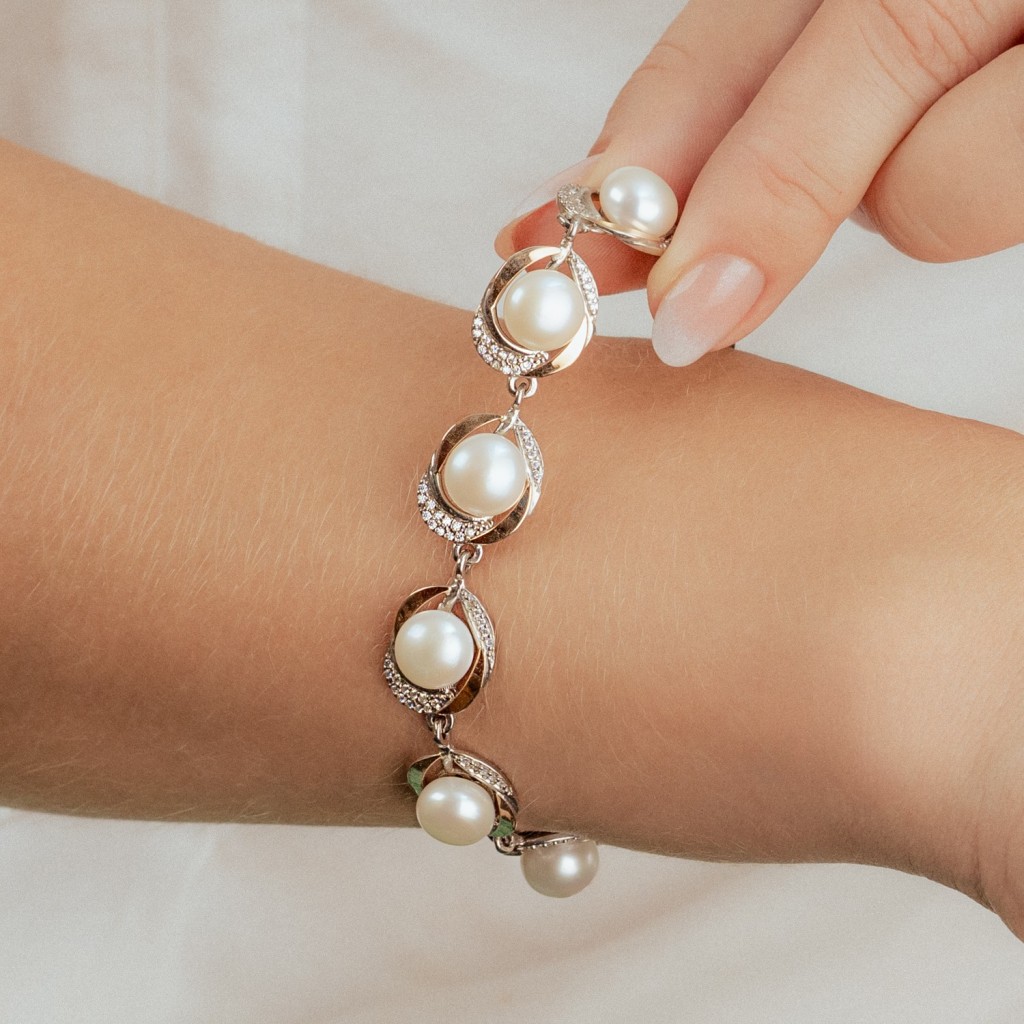 Sidabrinė apyrankė su perlais dengta auksu  - Goldinga