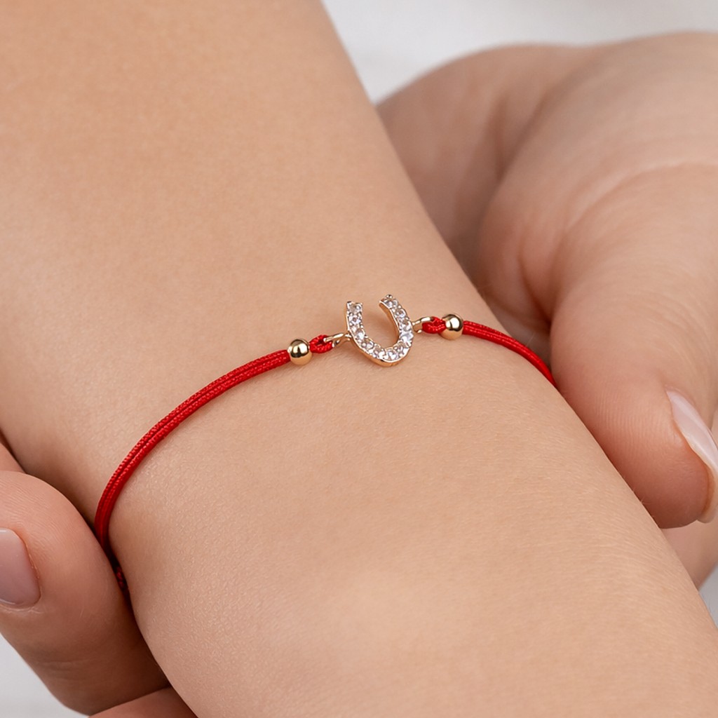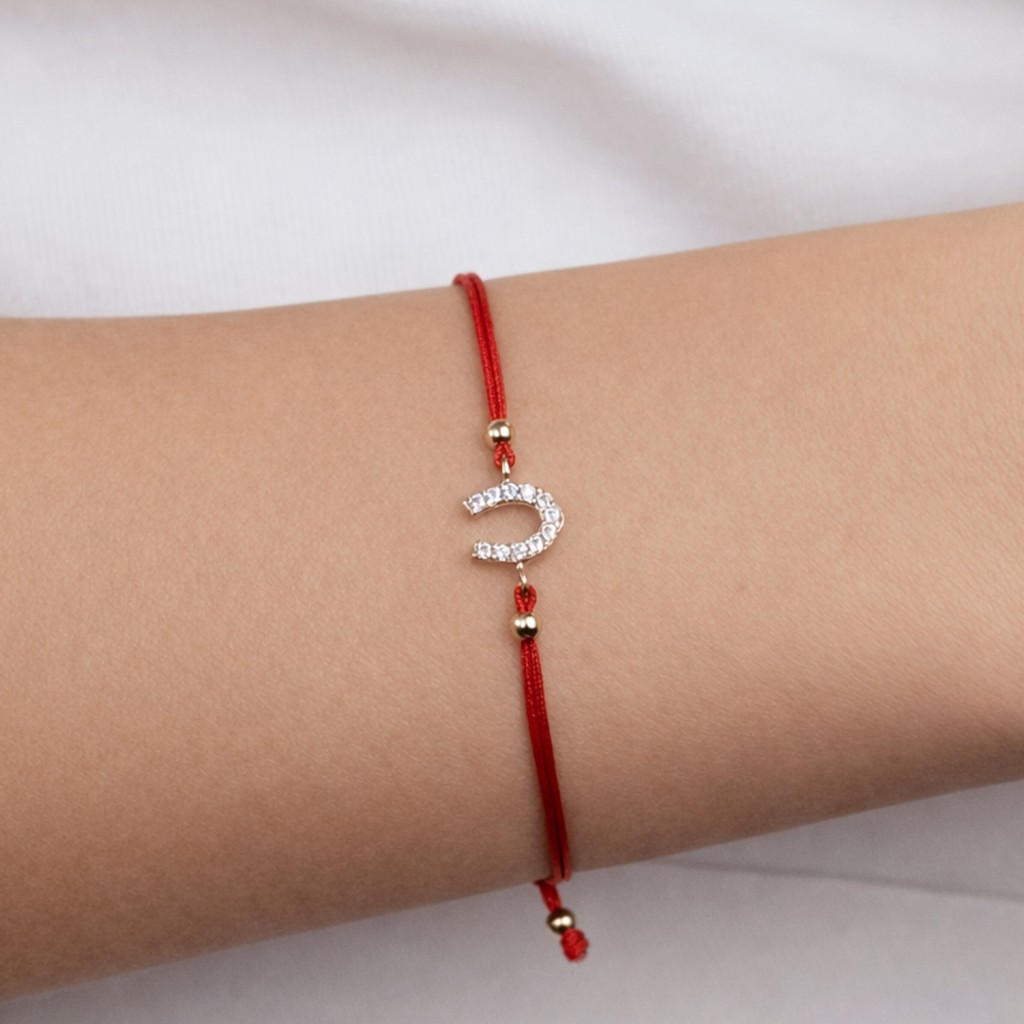 Punainen lanka rannekoru valkokultaisella loistavalla riipuksella 0.03ct