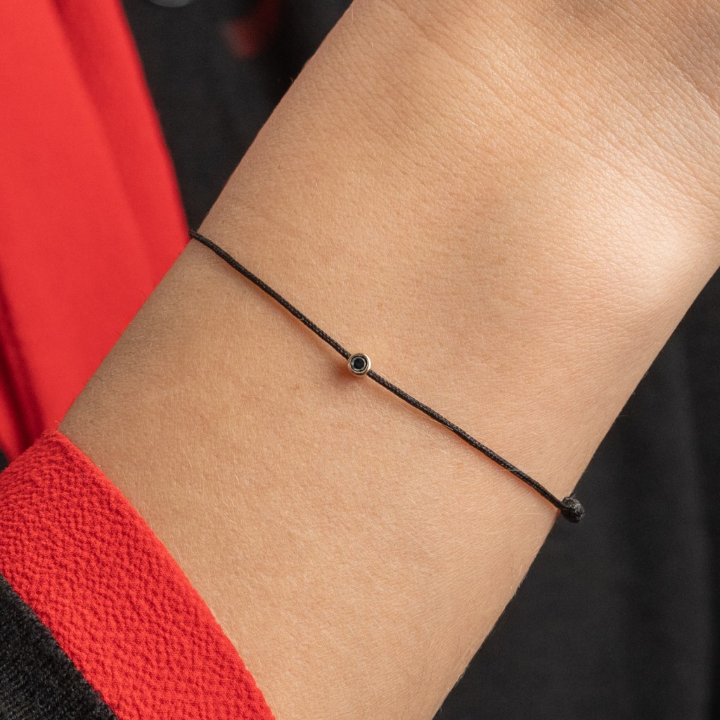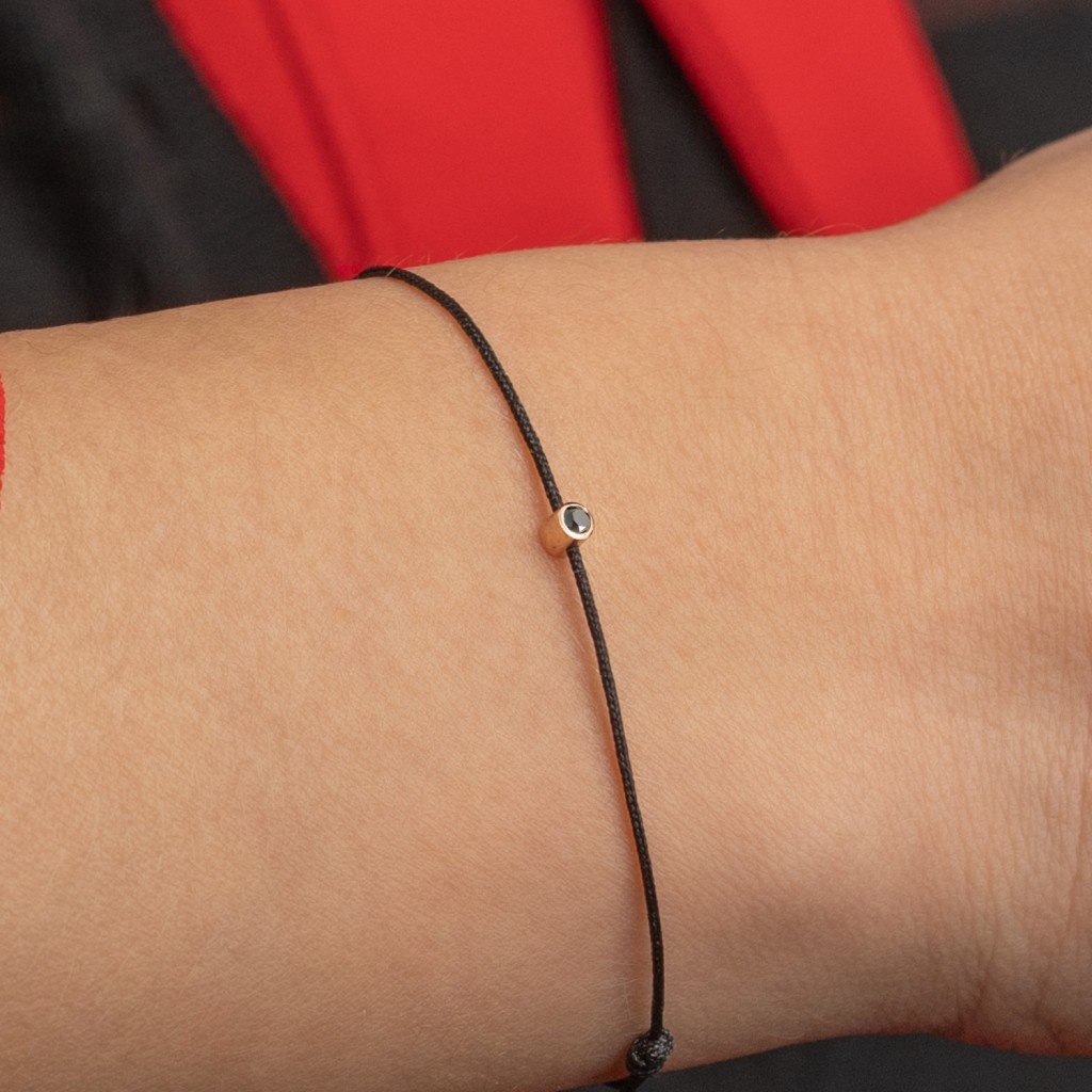 Punainen lanka rannekoru kultaisella loistavalla riipuksella 0.03ct