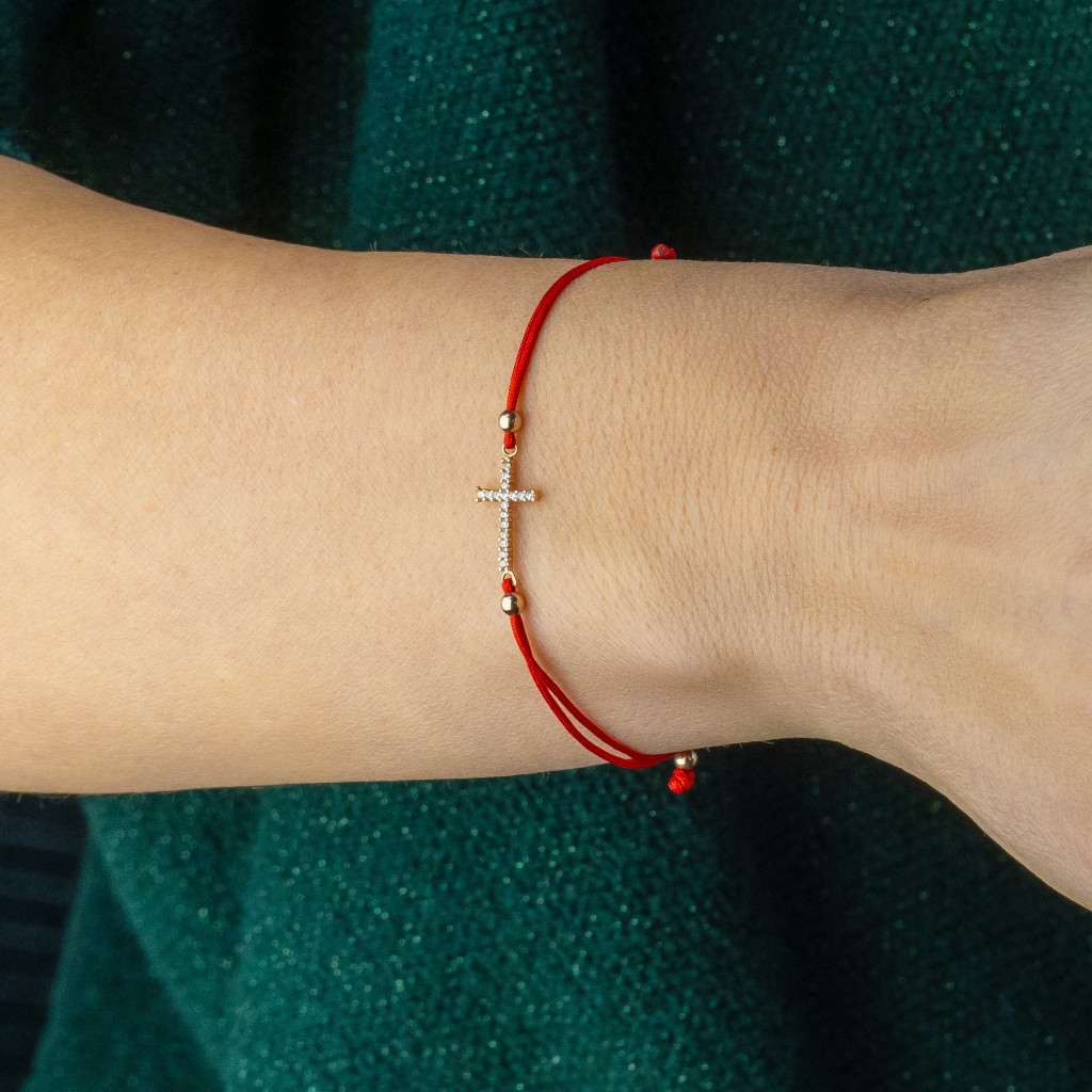 Raudono Siūlo Apyrankė Su Auksiniu Pakabuku "Kryželis" - Siūlų apyrankės su auksu - Goldinga
