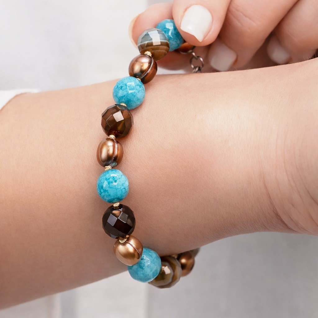 Rannekoru jadella, akaatilla ja helmellä