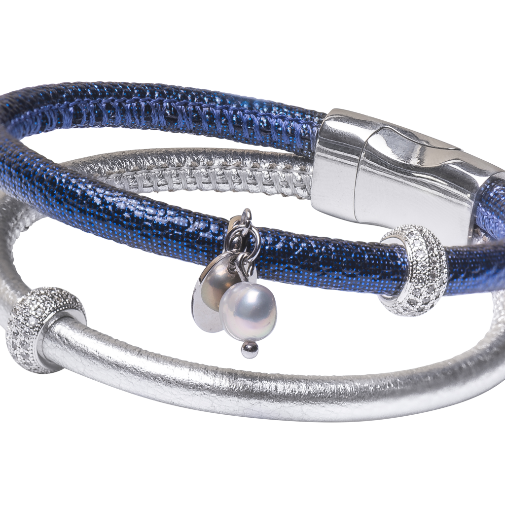 Keinonahkainen rannekoru helmelläja zirkoneilla