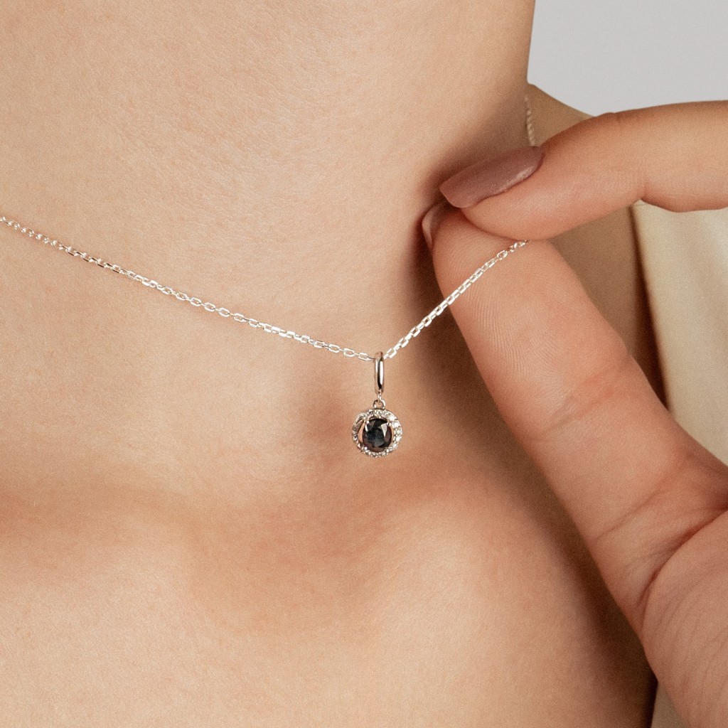 Valkokultainen riipus safiirilla ja timanteilla
