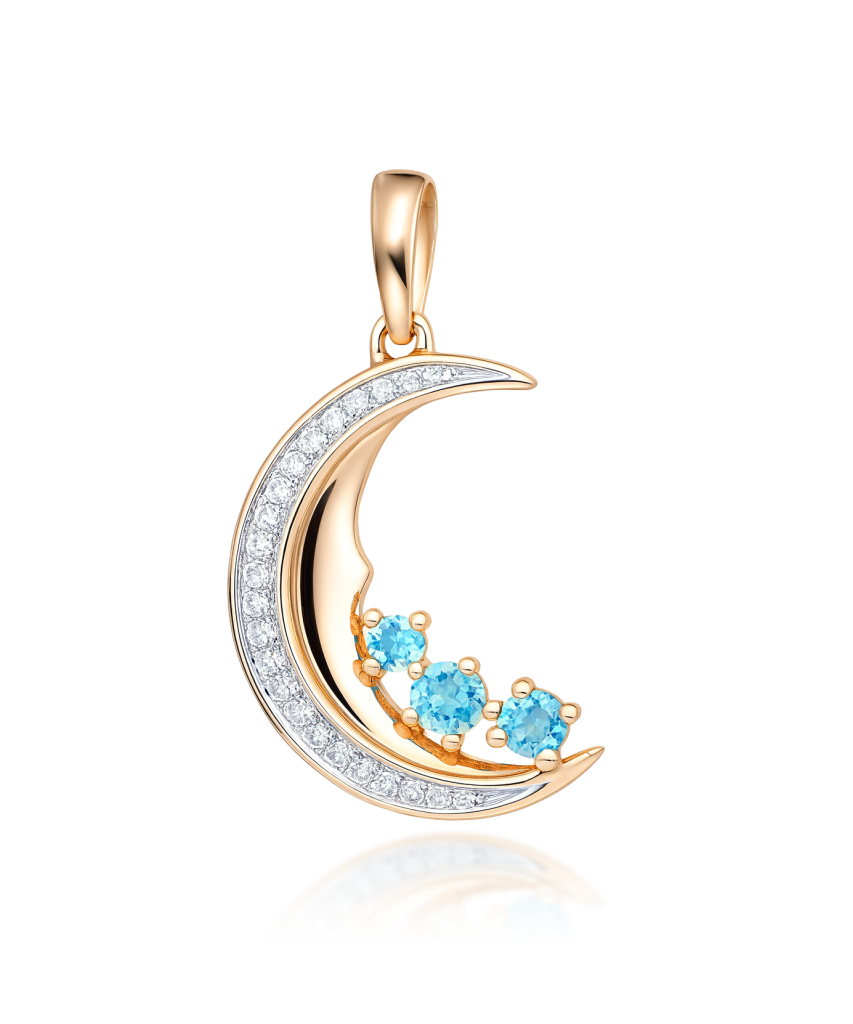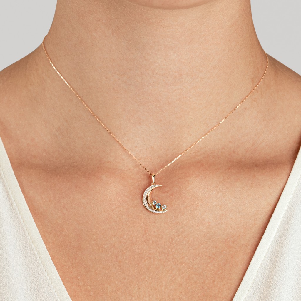 Kultainen riipus Londonin topaaseilla, topaaseilla ja timanteilla “Kuu”