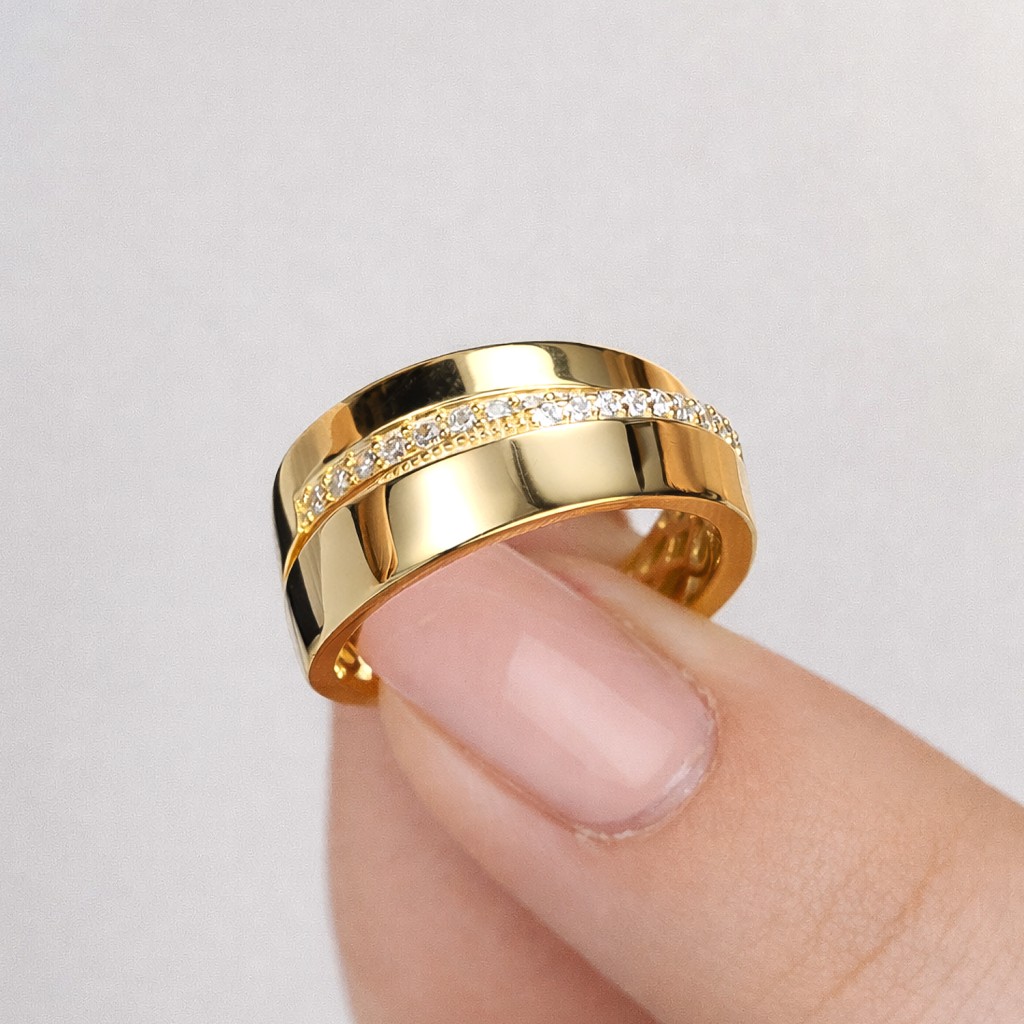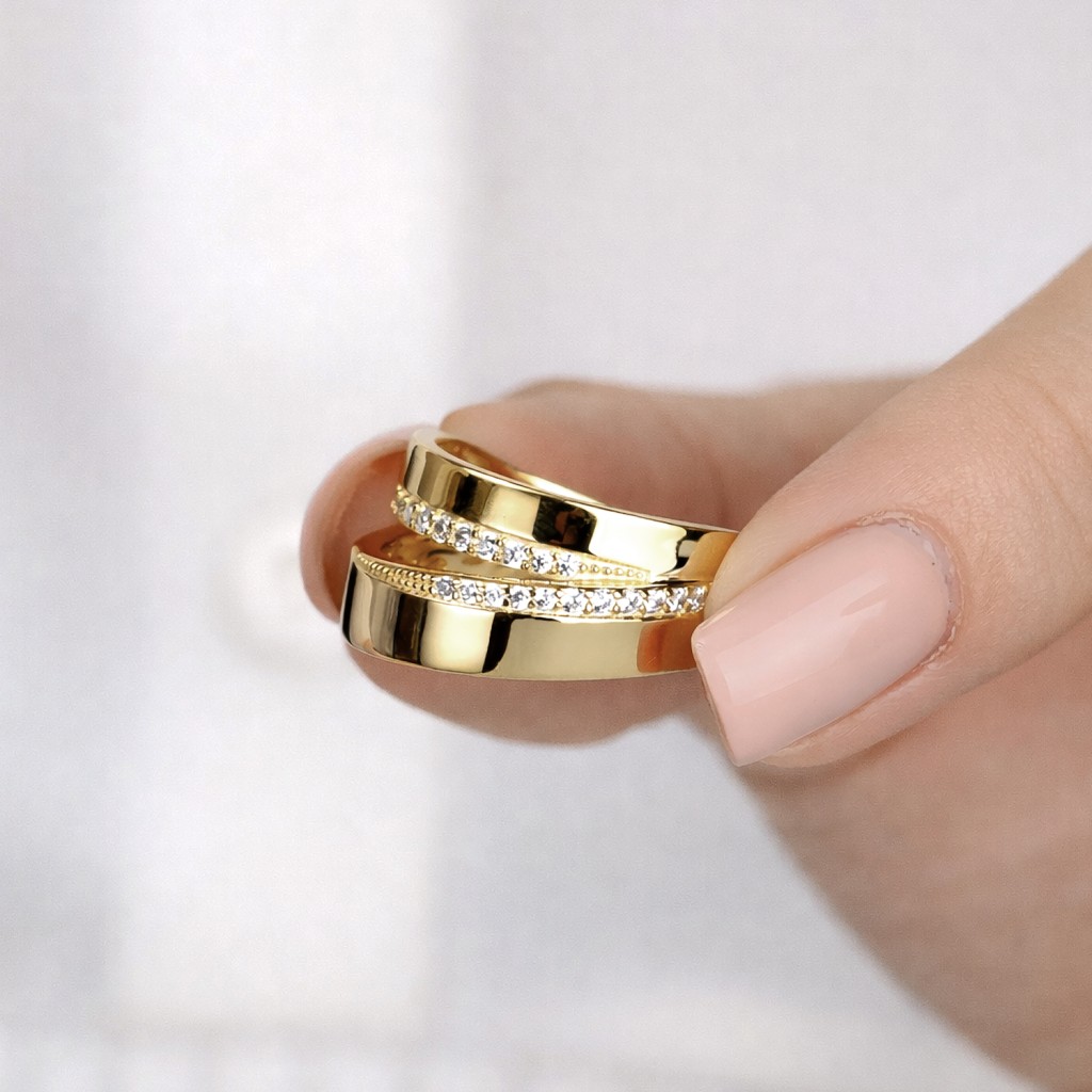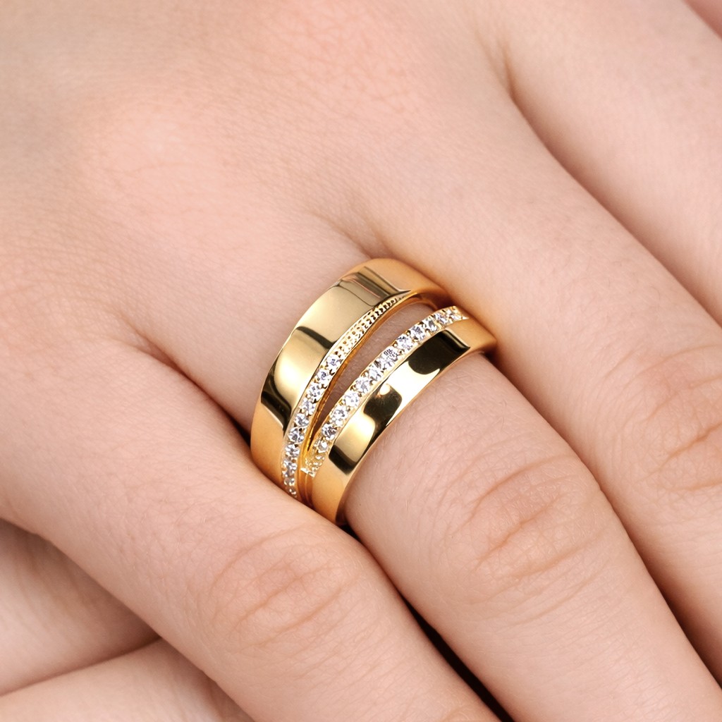 Hopeinen kullattu sormus zirkoneilla