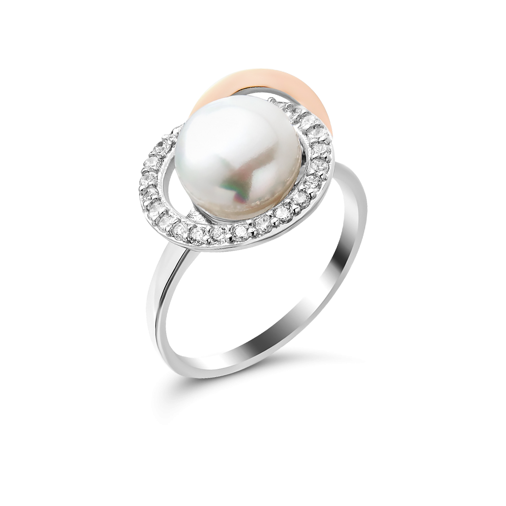 Sidabrinis žiedas su perlu ir cirkoniais dengtas auksu  - Goldinga