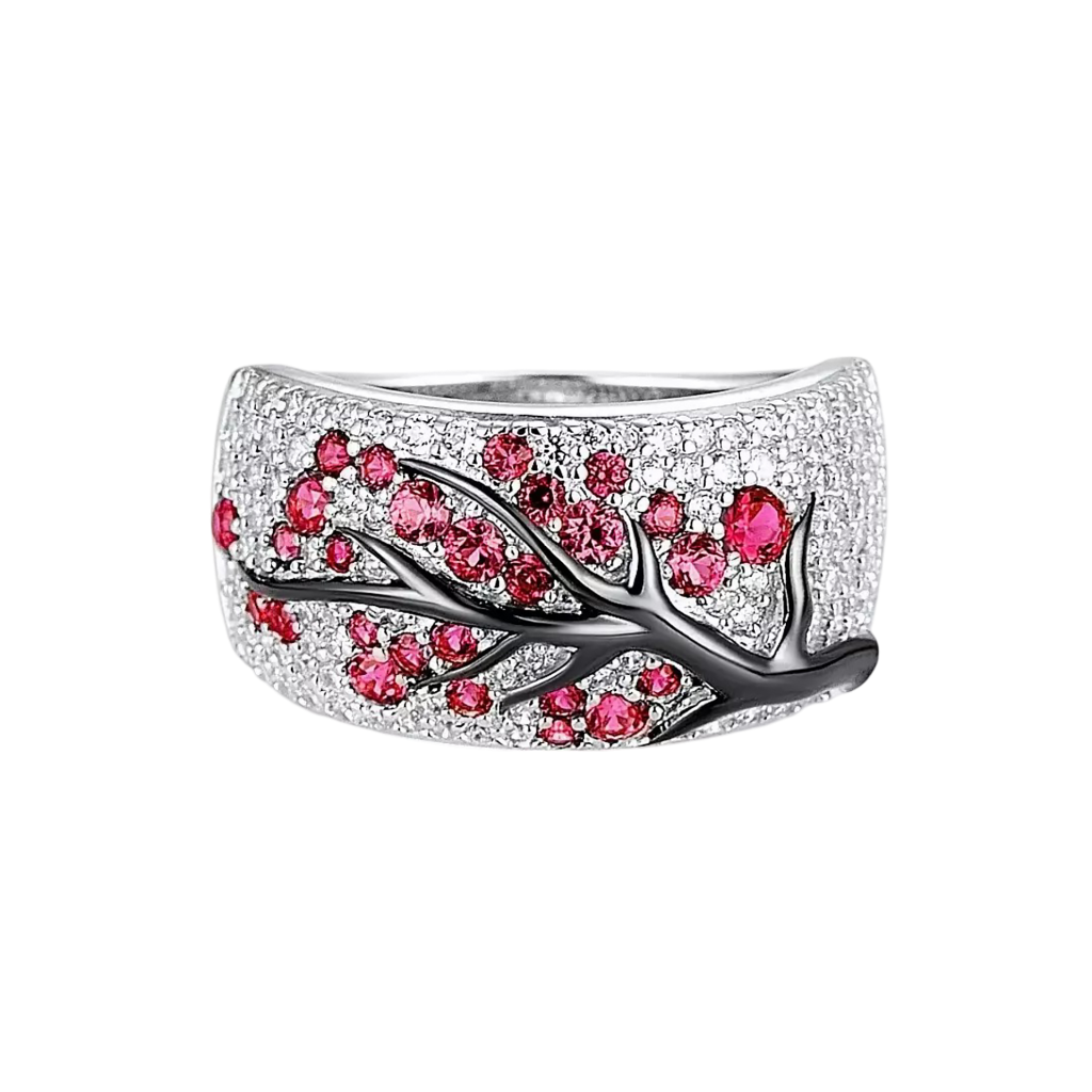 Sidabrinis žiedas su nano rubinais ir cirkoniais - Sidabriniai žiedai - Goldinga