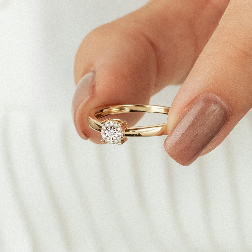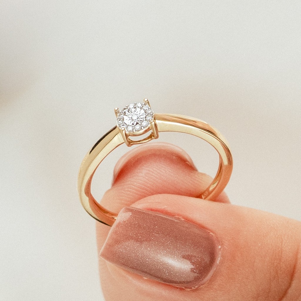 Keltainen kultasormus timanteilla