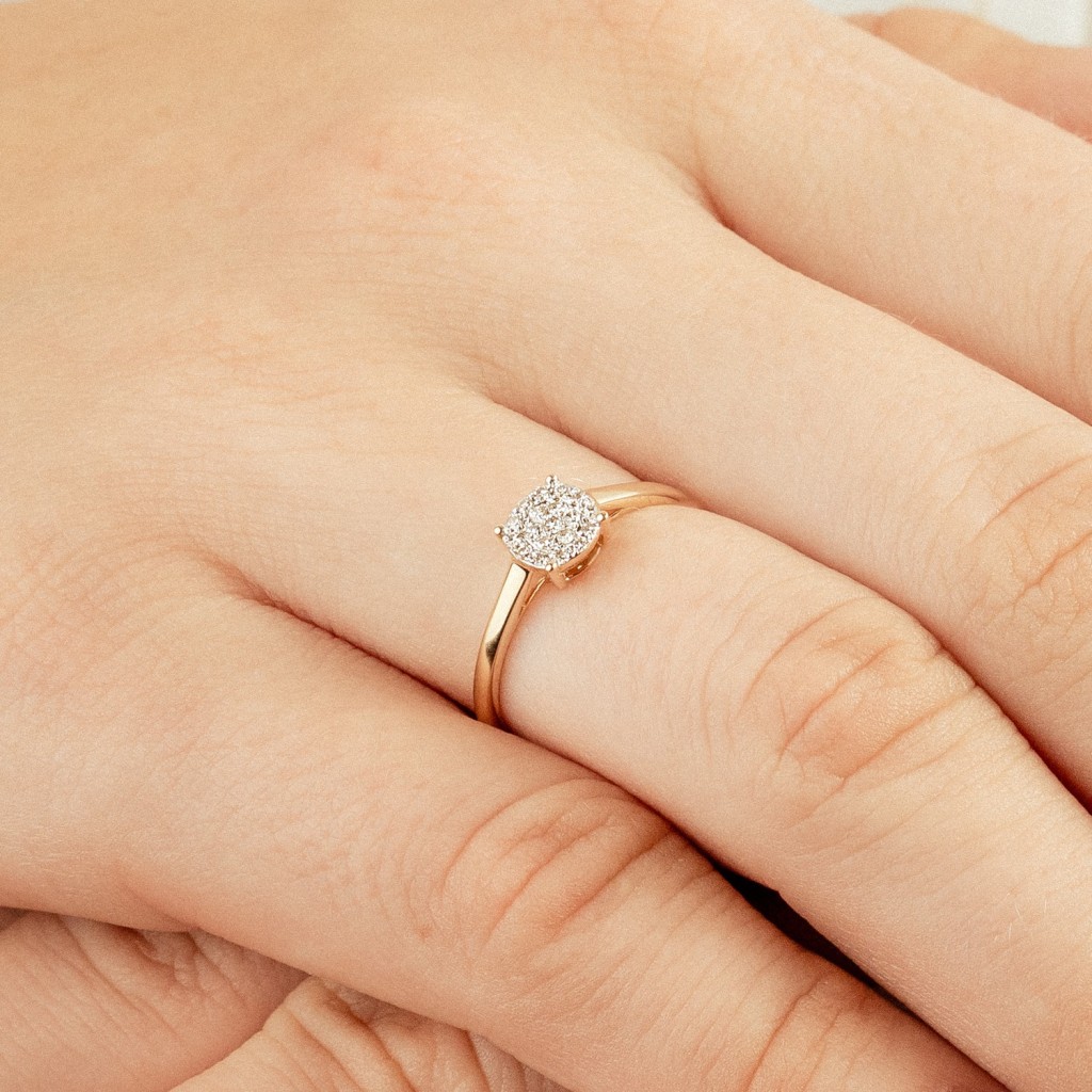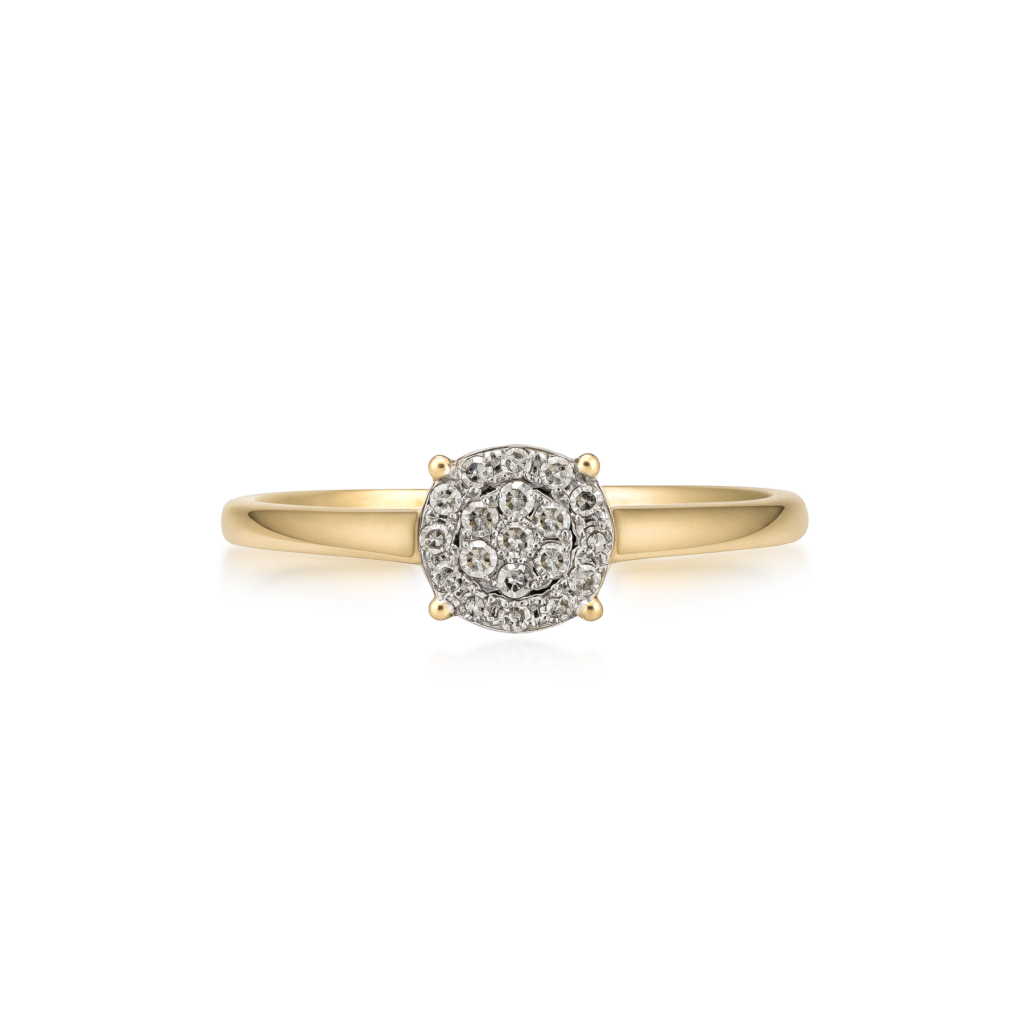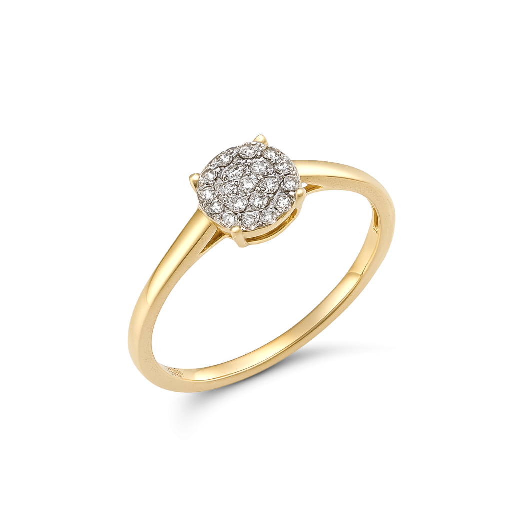 Keltainen kultasormus timanteilla